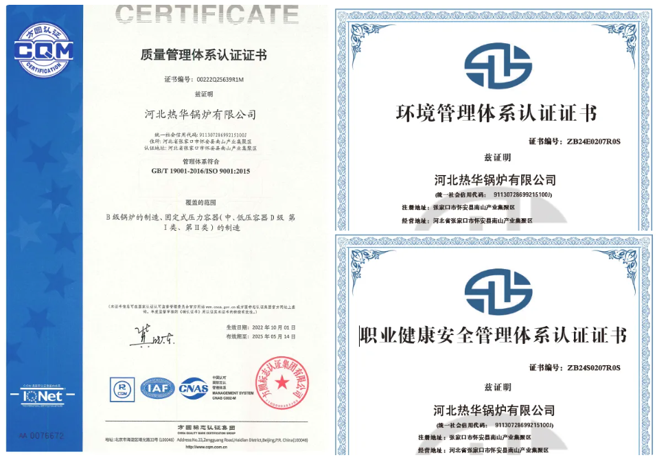 近期,河北热华锅炉有限公司再次成功通过了ISO9001质量管理体系、ISO14001环境管理体系和ISO45001职业健康安全管理体系(以下简称“三体系”)认证审核,并取得了认证证书。这一成就标志着河北热华锅炉有限公司在管理水平和运营效率方面迈上了一个新台阶。