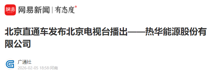 近日,热华能源股份有限公司迎来高光时刻——北京财经频道《北京直通车》栏目于2026年2月2日晚8:00首播公司专题报道,深度呈现了热华能源在清洁能源领域的技术创新与务实成果。