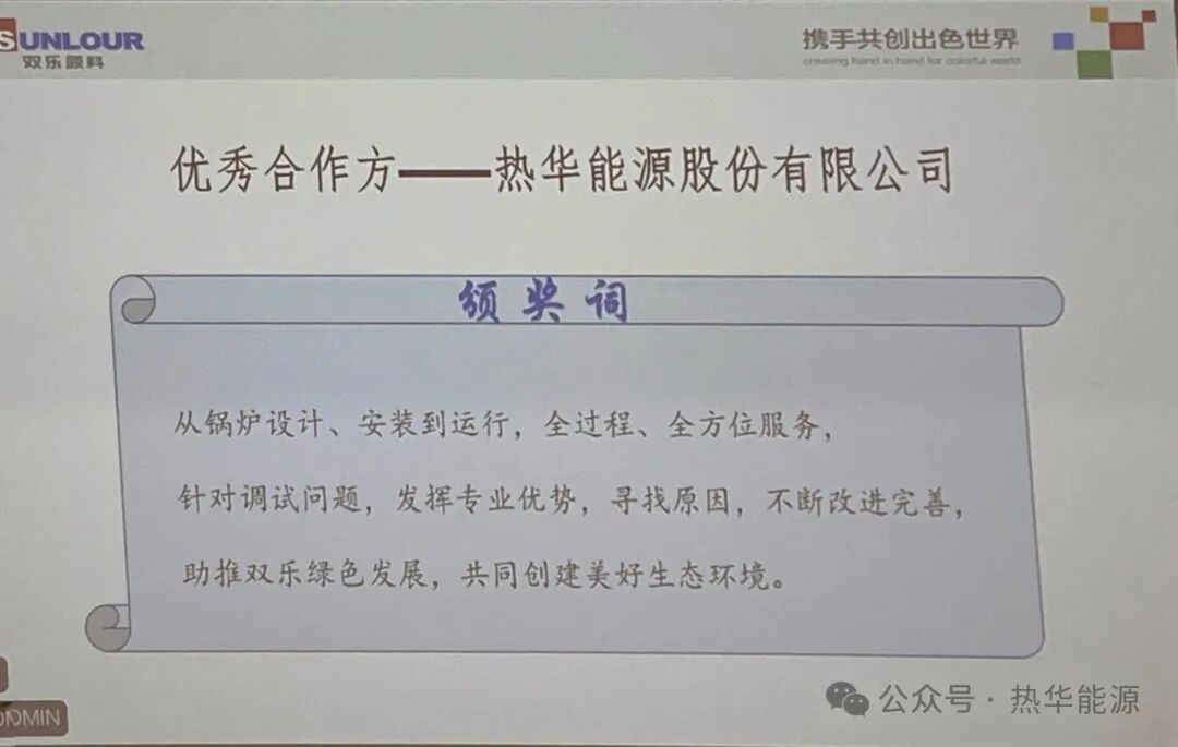 荣获“优秀合作方”奖项,体现了业主对热华能源作为生物质锅炉项目EPC总包方工作的高度认可,更是对热华能源秉持“合作共赢”理念的肯定与激励。
